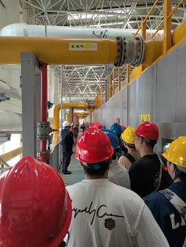 实习期间,幸福林带供热公司的工程师为同学们进行了系统讲解。大家依次参观了中央控制室、锅炉房、泵站、换热机组以及环保处理设施等核心区域。工程师重点介绍了供热系统的整体工艺流程、智能监控平台对热源、管网和用户端数据的实时采集与精准调控,以及为实现高效清洁供热所采用的先进技术和设备。